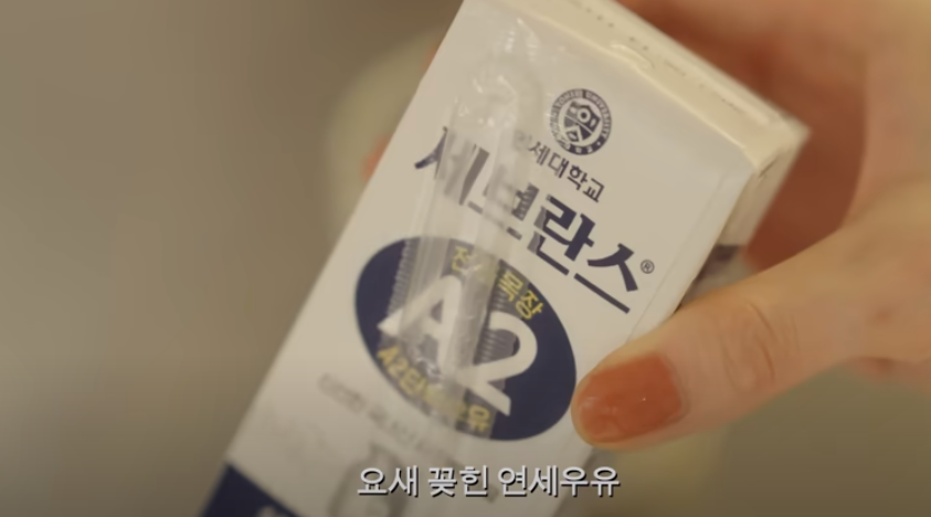 우유는 연세대학교 세브란스 전용목장 A2 단백 우유입니다. 요즘 강민경이 꽂힌 우유라고 하네요.