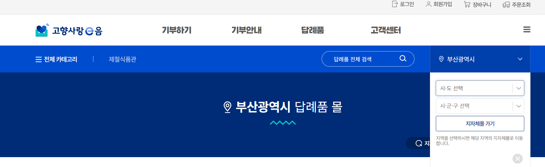 고향사랑 e음 종합정보시스템 답례품 보러 가기