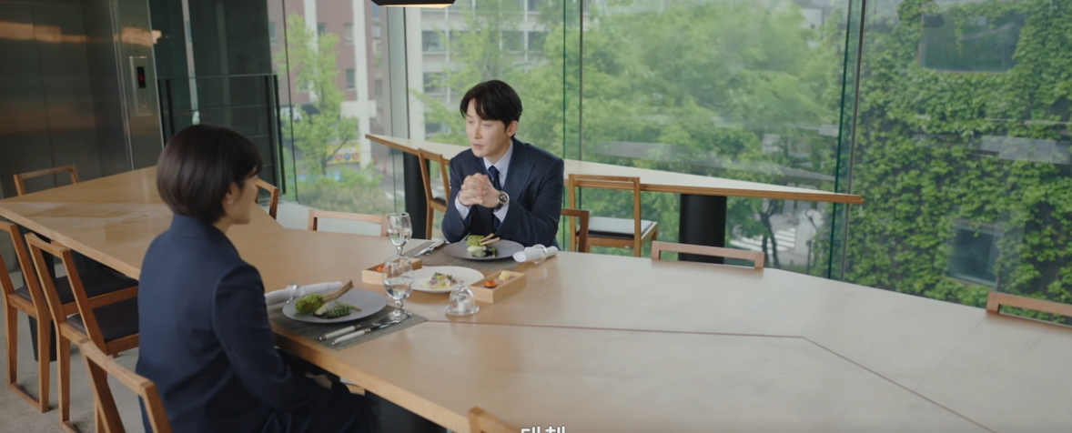 극 중 변호사인 남지현과 김준한은 멋진 레스토랑에 갑니다.