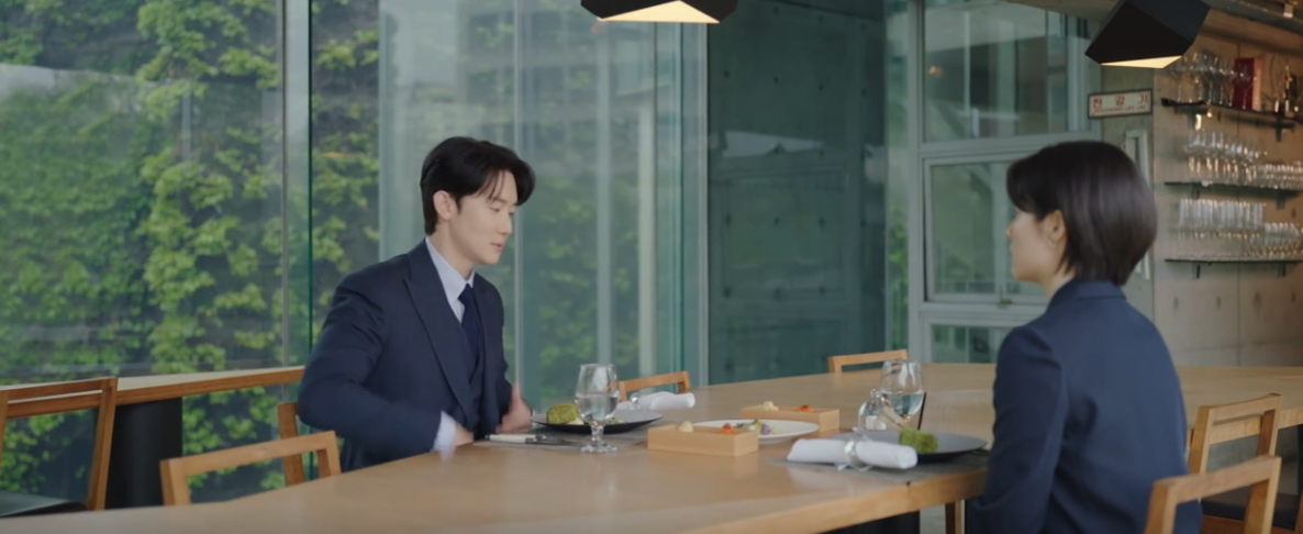극 중 변호사인 남지현과 김준한은 멋진 레스토랑에 갑니다.