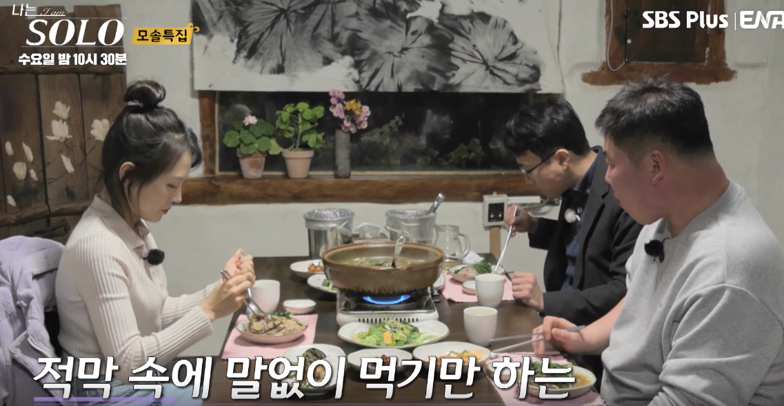 적막 속에 먹는 모습... 특히 자신을 선택해 놓고도 말없이 있는 광수의 모습은 영철을 배려하는 모습이 아니라 오히려 분위기를 다운시켜서 불편하게 만드는 것 같네요. 아무래도 모태솔로다 보니 이성과의 대화가 쉽지 않고 어떻게 대해야 하는지 사회적 기술이 조금 부족해 보였습니다. 하지만 자신의 틀을 깨려고 하는 광수의 모습이 안타깝고 응원하게 되었는데요. 앞으로 달라질 모습이 기대됩니다.