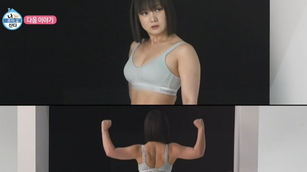 일단 박나래의 결과를 보시면 마른 몸은 아니지만 탄탄한 복근과 등 근육을 자랑하는 듯 보입니다.