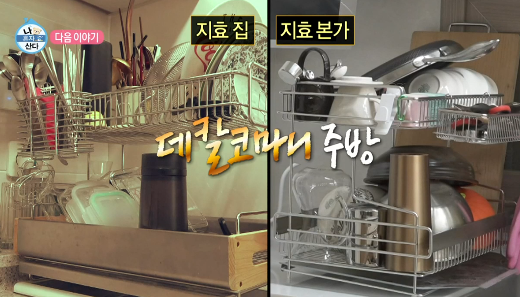 주방 식기들을 정리한 모습도 지효의 본가와 자취집이 거의 유사합니다.