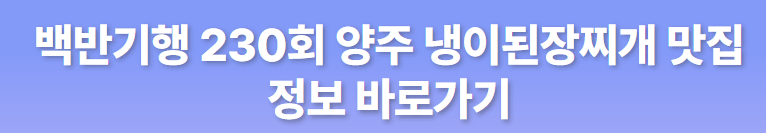 백반기행 231회에서는 230회에 이어 배우 임채무와 임채무 손자가 출연하여 경기도 양주 가성비 맛집을 탐방하는데요. 겨울방학 특집으로 식객 허영만, 임채무, 임채무 손자와 함께 방무한 경기도 양주 맛집 정보를 알려드리겠습니다.