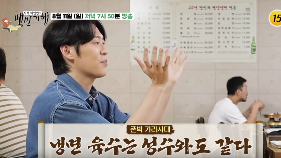 | 백반기행 259회 평양냉면 콩국수 맛집 존박 성시경 맛집 정보 (0) | 2024.08.09 |