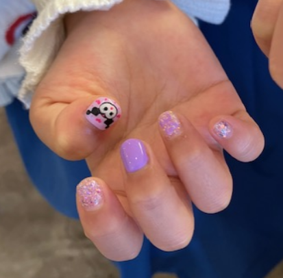 짜잔~ 산리오 키즈 손 아트입니다. 아이가 직접 쿠로미로 골랐고요. 너무 귀엽죠? 작은 손톱에 디테일하게 잘 그려주신 것 같아요. 젤 네일 아트입니다.