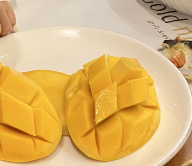 마지막으로 후식으로 망고 먹었어요. sns 후기 이벤트를 하는 중이길래 (방문시점 2024년 1월) 후기 올리고 받은 망고인데요. 솔직히 맛없으면 가짜 후기 잘 안 올리는데.. 맛있어서 바로 올리고 망고 받았어요. 망고는 생각보다 많이 달지는 않았어요.