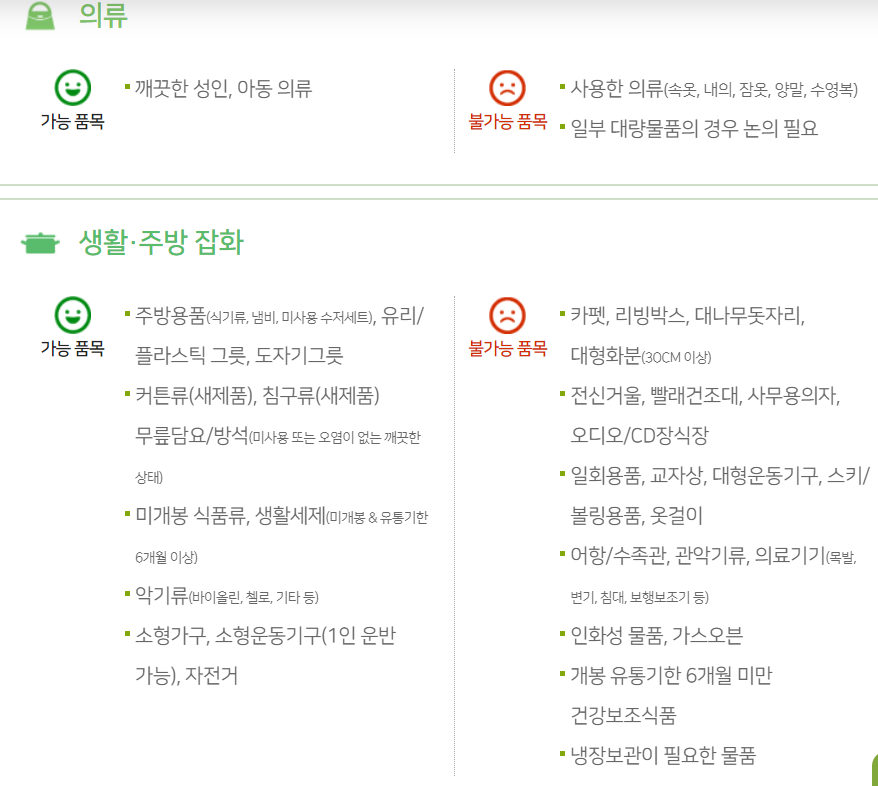 기부 가능 물품, 기부 불가능 물품 알아보기