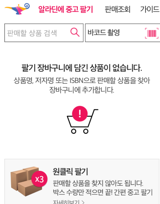 그리고 이렇게 책 하나하나 검색해서 파는 방법도 있고 요즘은 원클릭 팔기 시스템이 도입되었네요.