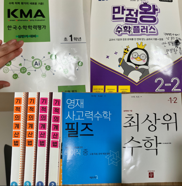 그전에 안 보이던 kma문제집이 보이시죠? 이것과 관련하여 사고력 수학학원 두번 보내고 그만둔 썰을 풀어보겠습니다.