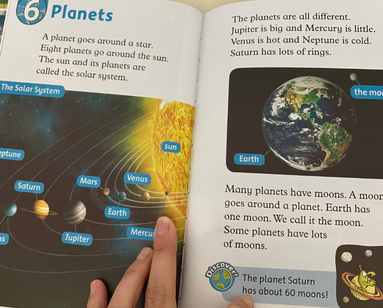 예를 들어 우주에 대한 내용을 배울 때는 이미 아이가 알고 있는 배경지식에 대해 이야기 나눠보고, 읽어보기도 했습니다.