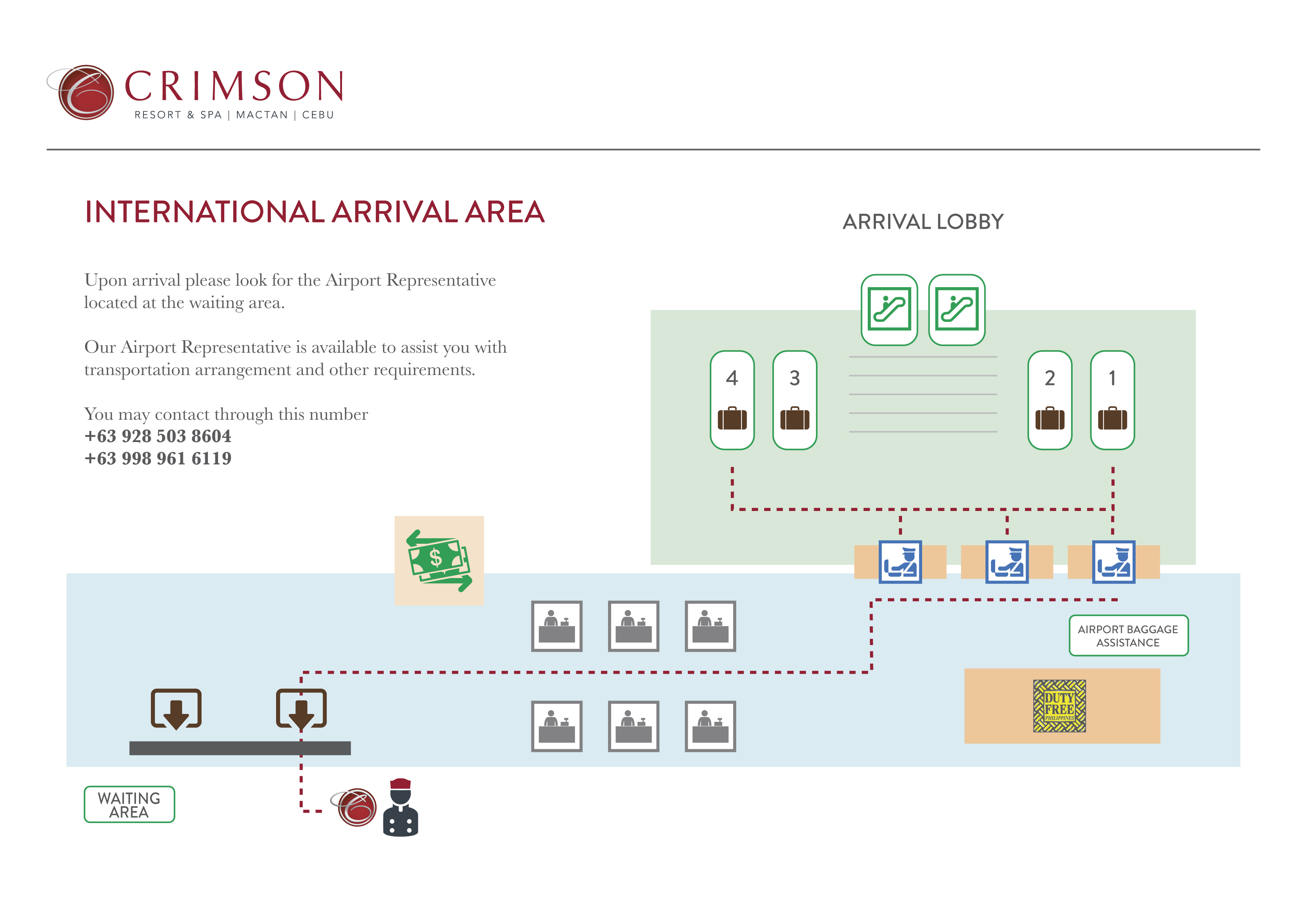 위의 사진만 보면 좀 난감한데요. 공항 입국장 자체가 크지 않았어요. 내려서 나오면 크림슨 리조트 외에도 많은 픽업 업체들이 waiting area 에서 피켓을 들고 서서 기다리고 있어요. 저도 나오니 많은 인파 중 'Crimson'이라는 피켓을 든 픽업 전담 직원이 서 계셨어요. 그래서 저희가 크림슨 픽업 예약했다고 하니 제 이름을 확인하더라고요.