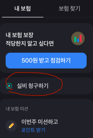 4. '실비 청구하기' 누르고 각종 서류 사진 첨부해서 보내기