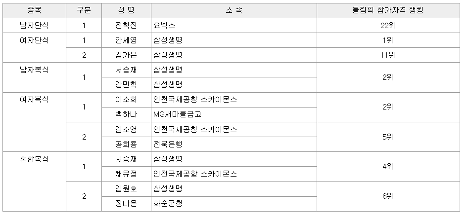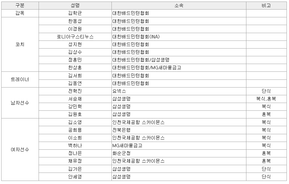 배드민턴 국가대표팀 명단