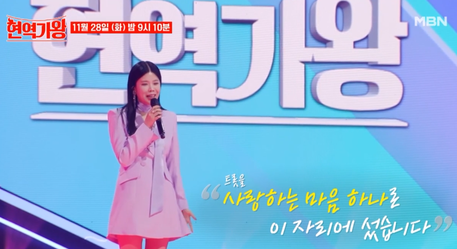 트로트 예능 현역가왕이 11월 28일 화요일 첫 방송되면서 화제가 되고 있습니다. '한일 트롯 가왕전'의 국가대표 top7을 선발하는 예능 프로그램인데요. 미스트롯, 미스터트롯의 서혜진 PD가 만들