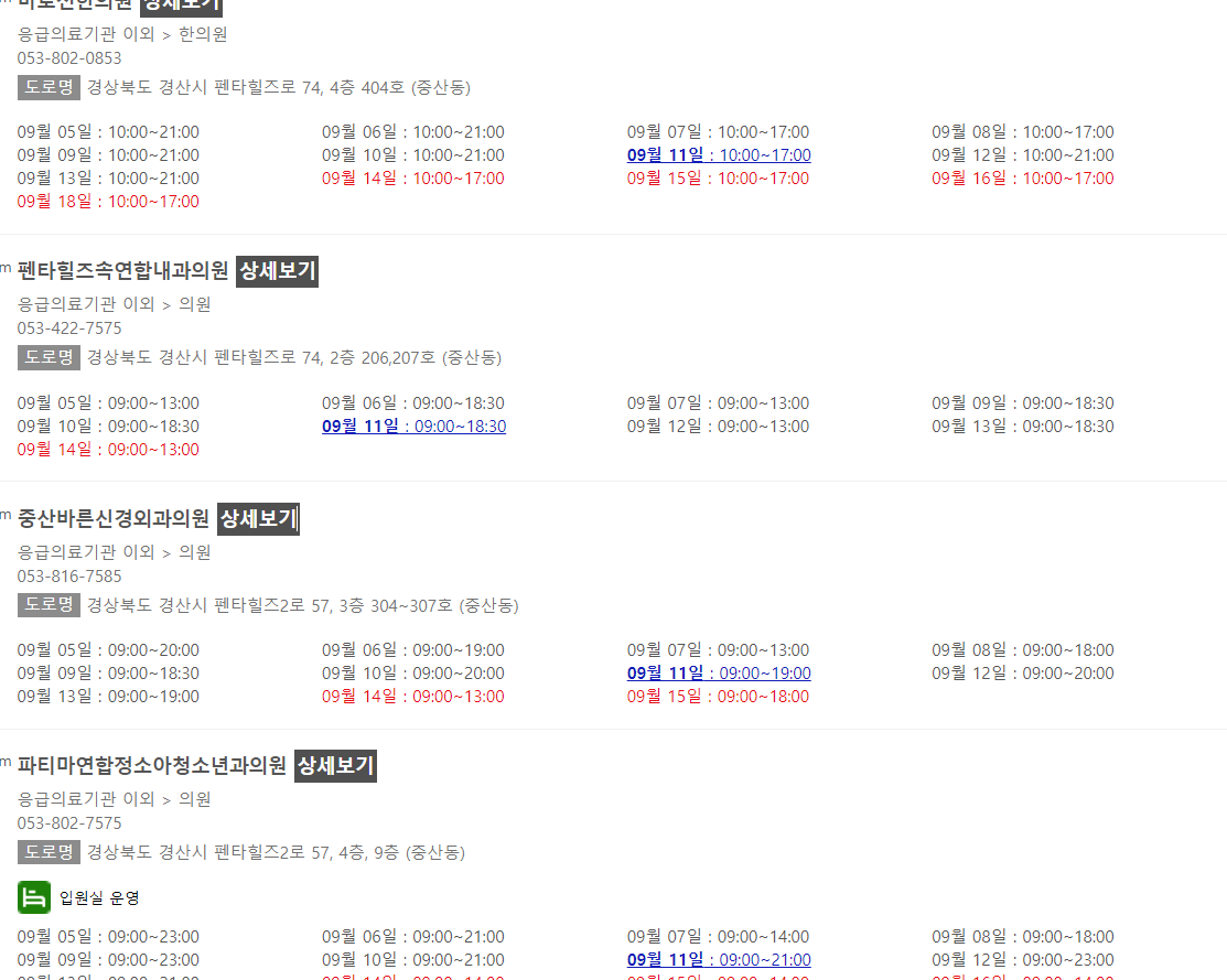 "2024년 경북 경산시 추석연휴, 휴일, 공휴일 실시간 문 여는 병원, 약국 정보"