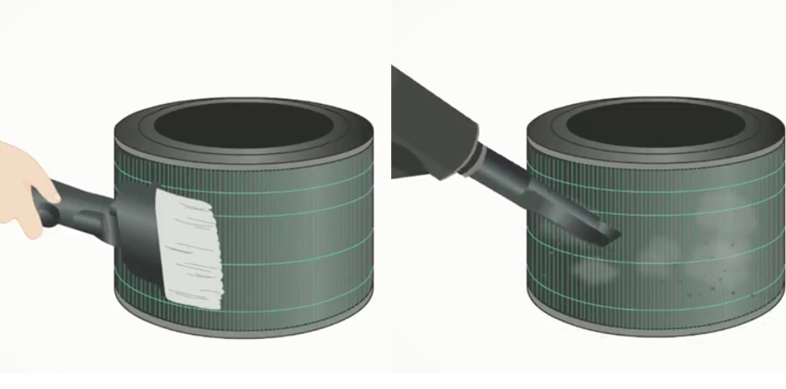 극세필터는 부드러운 솔이나 진공청소기로 필터에 붙은 먼지를 제거해 줍니다.