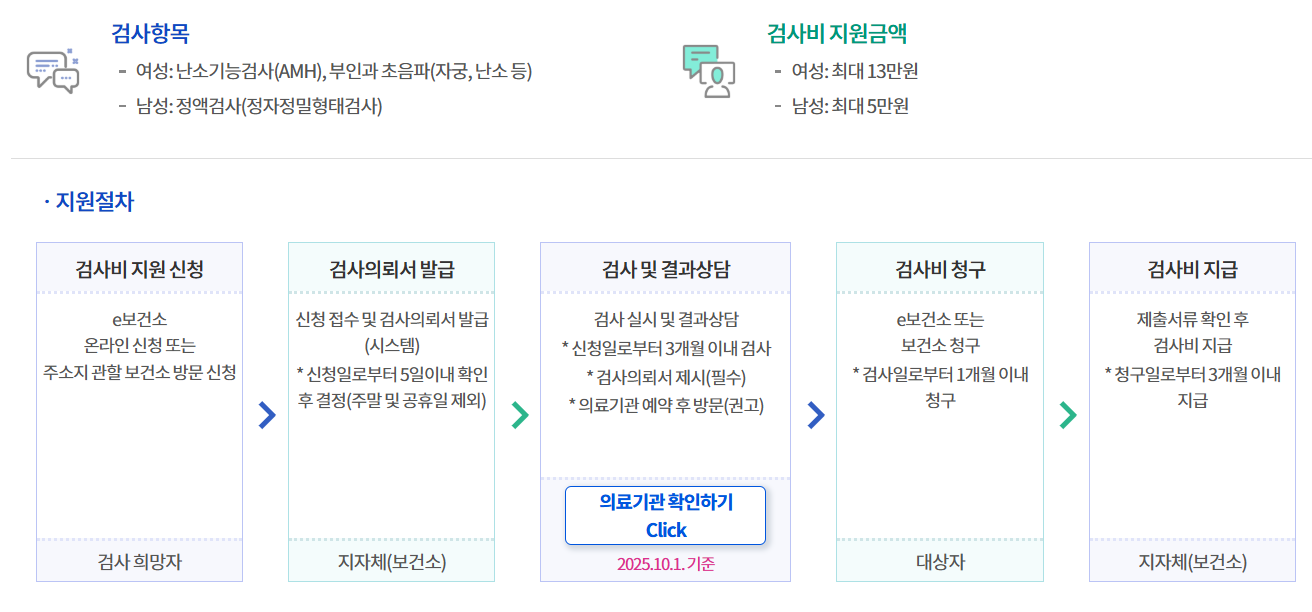 검사항목, 검사비 지원금액, 지원절차는 아래에서 간단히 확인하세요.